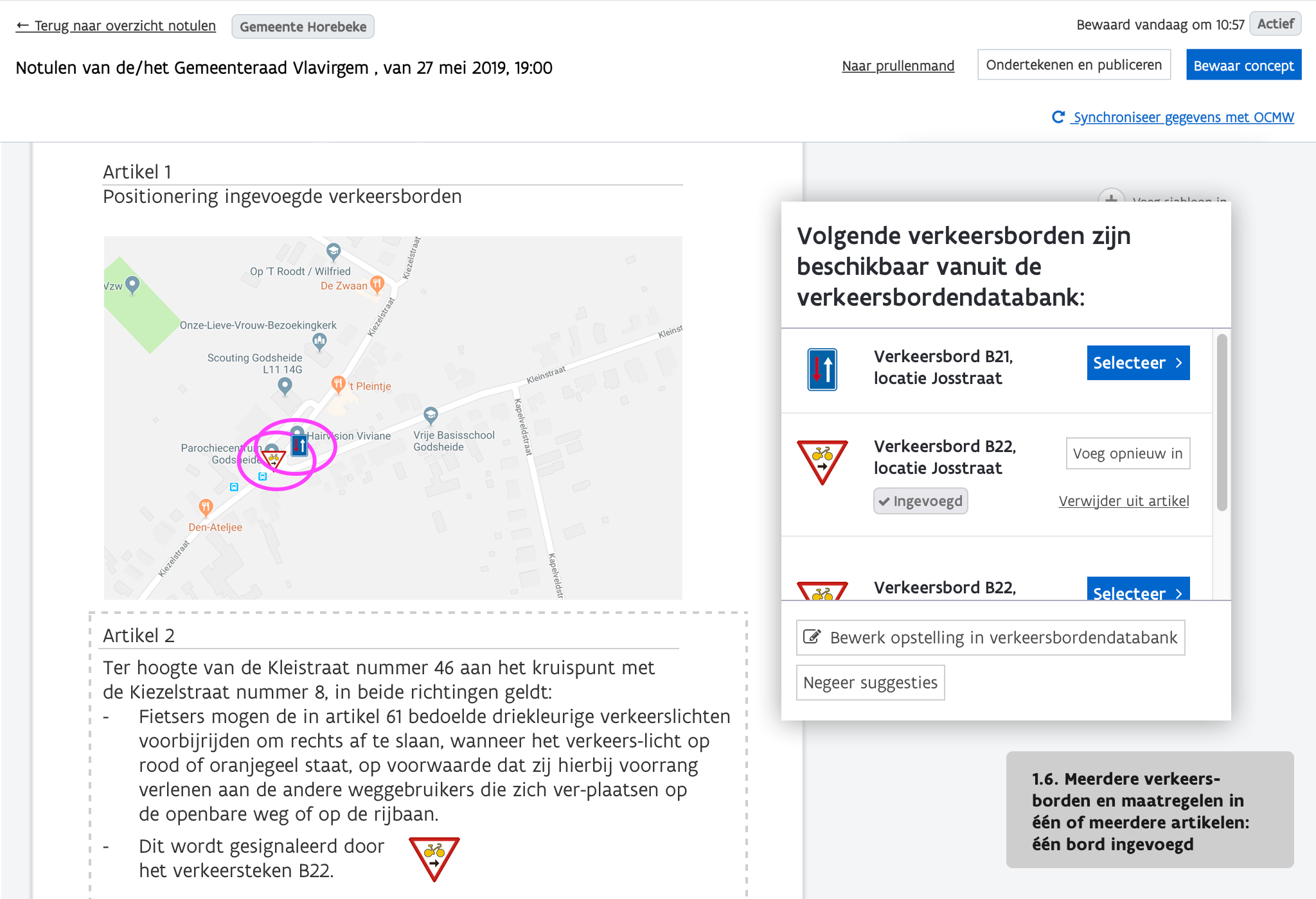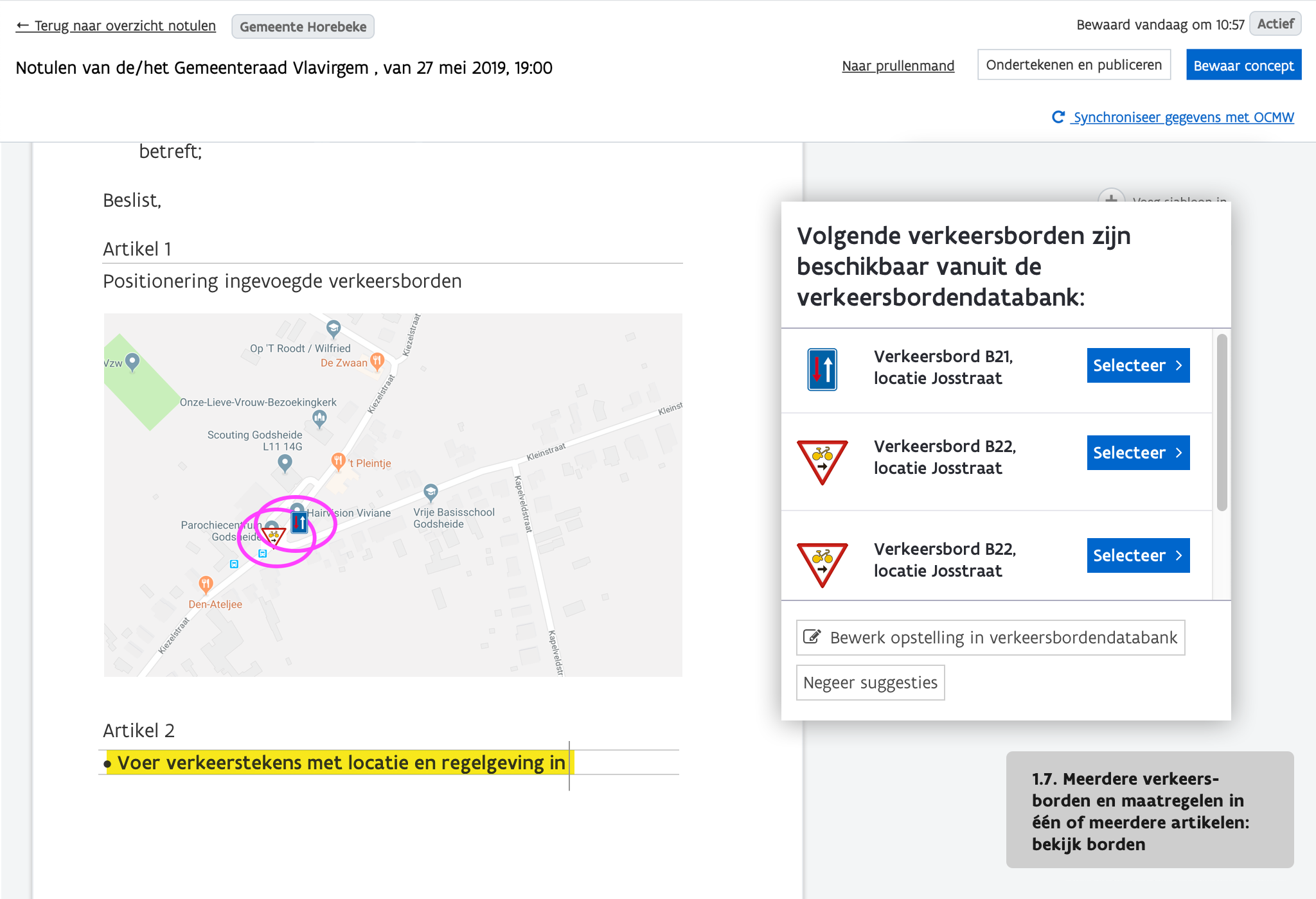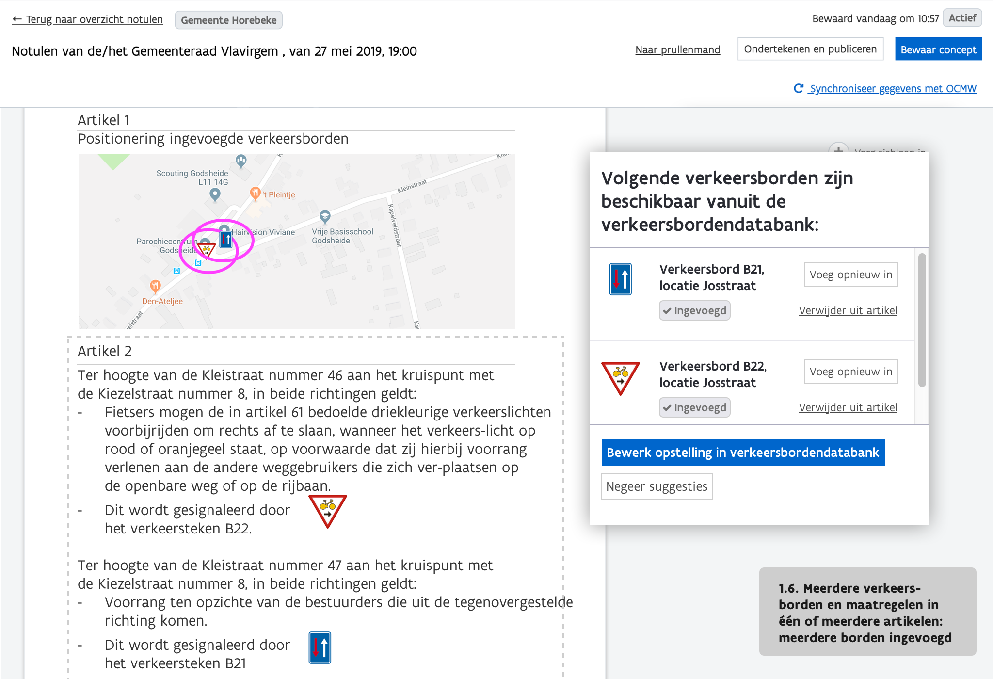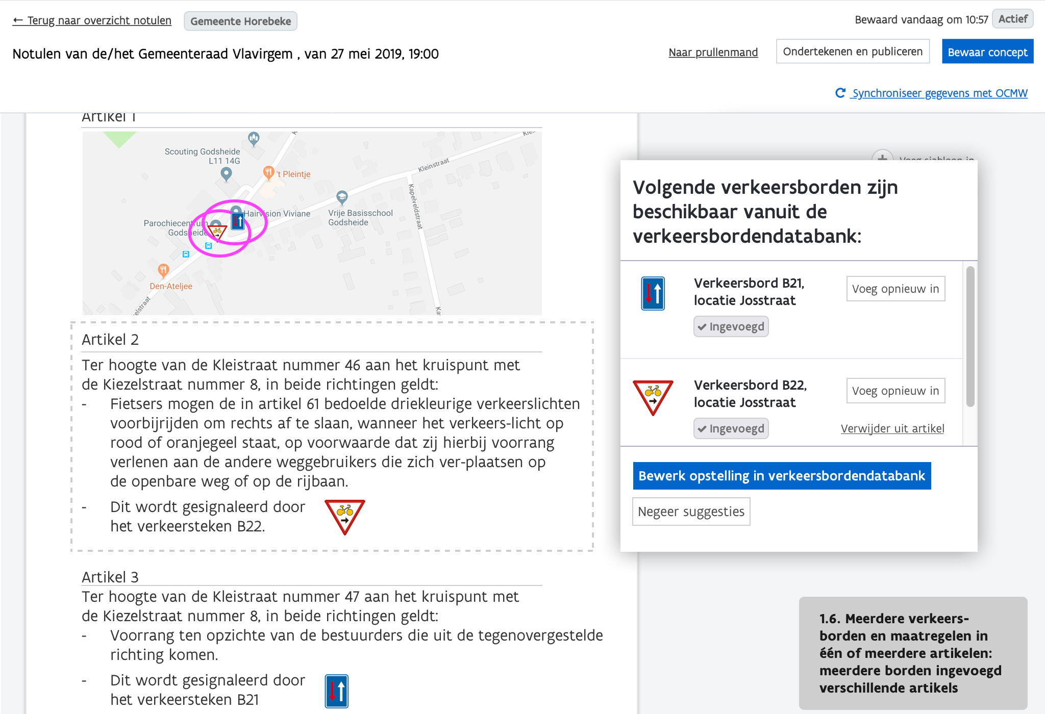 Scenario: Gelinkt Notuleren pikt Algemeen wegenreglement op, opslaan als ontwerpbesluit