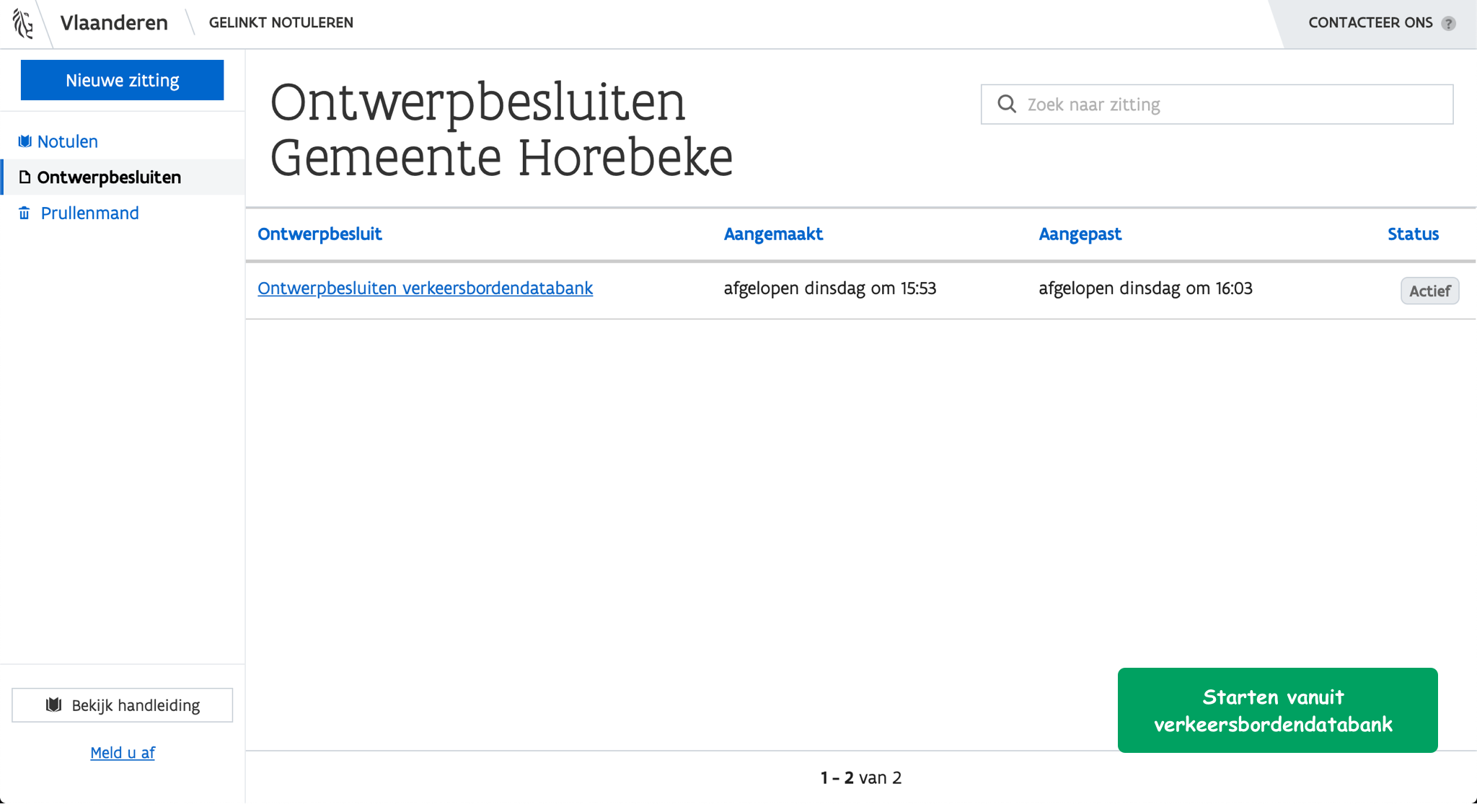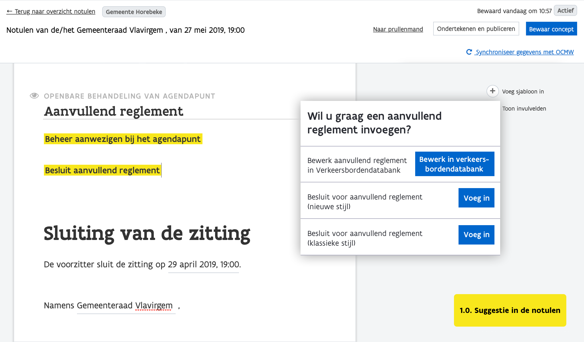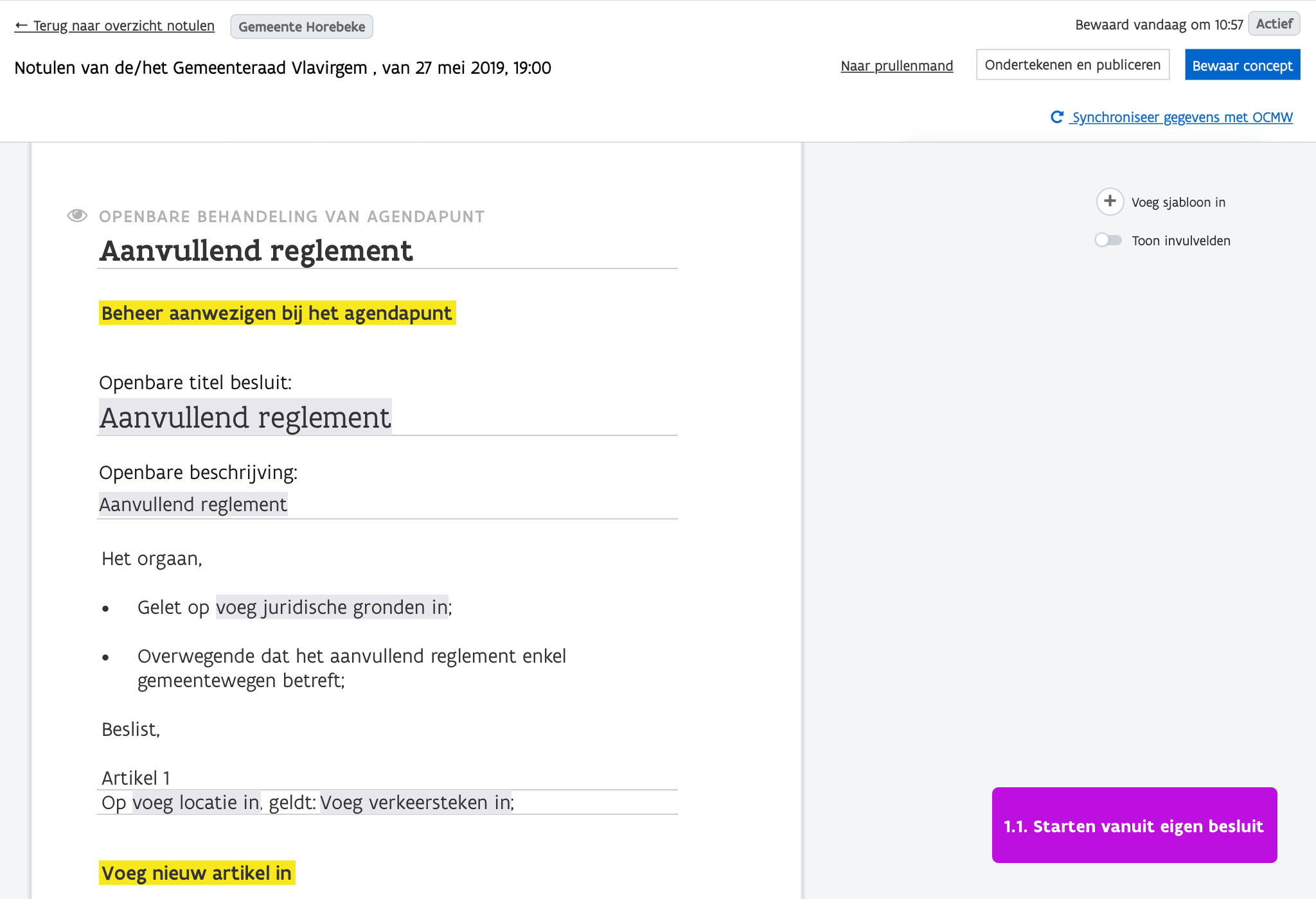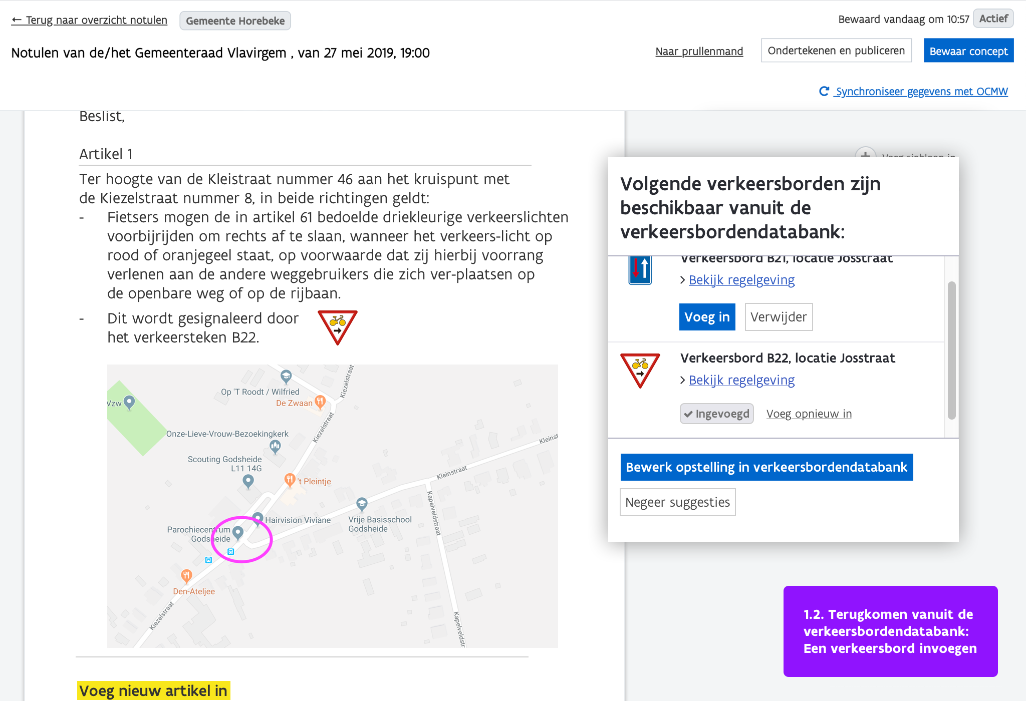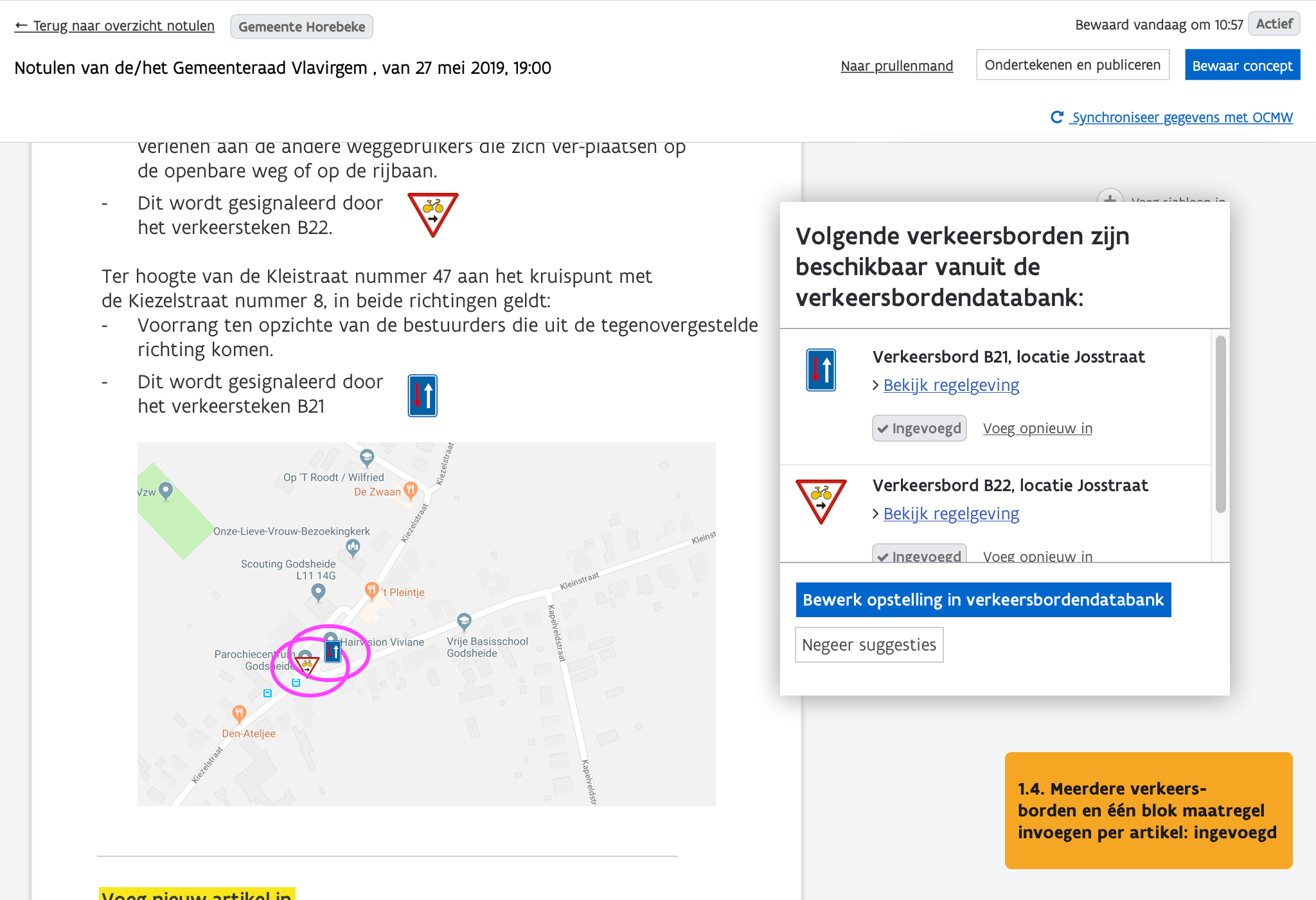 Scenario: Gelinkt Notuleren pikt Algemeen wegenreglement op, opslaan als ontwerpbesluit