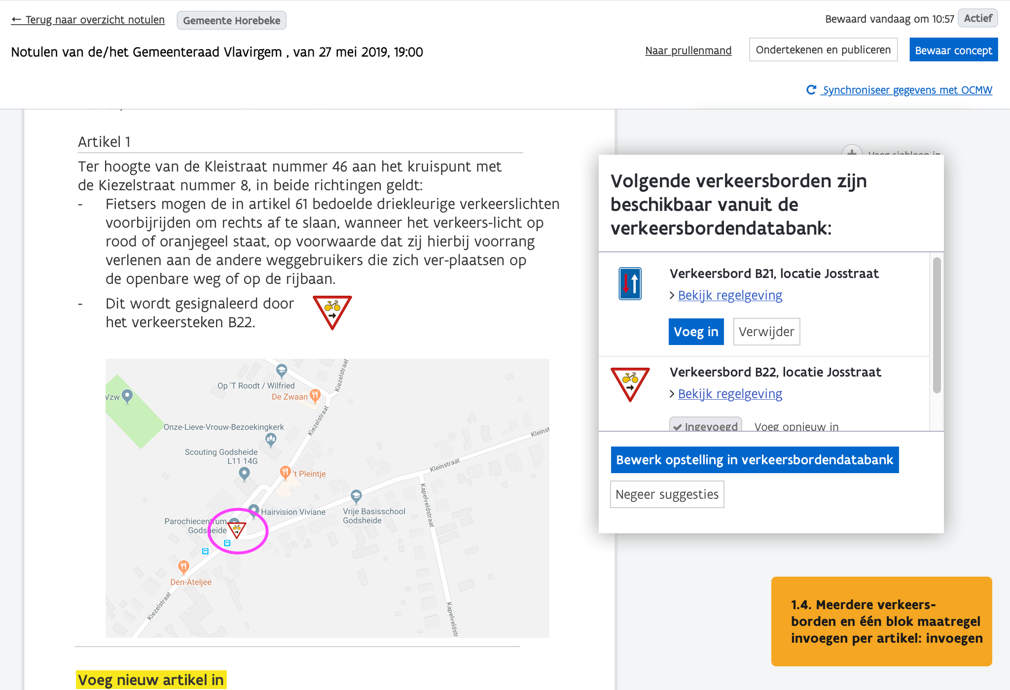 Stap 2 B: Meerdere verkeersborden en maatregelen per artikel